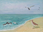 2012Vogels kijken naar elkaar hoe ze hun verschillend gevormde snavels gebruiken.