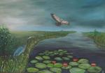 2010Reiger en buizerd azen op een lekkere kikker. Voor elk is er een (rechtsonder), maar ze kunnen nog wegspringen.
